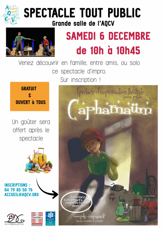 Sur inscription : : accueil@aqcv.org, 04 79 85 50 76 ou au centre.